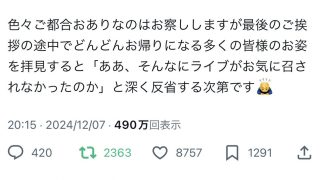 ドリカムがライブの客に苦言「最後の挨拶の途中で帰る人がたくさんいた。そんなにお気に召さないライブだったのか」→炎上しツイート削除