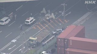 【テトラ】4トンの波消しブロック道路に落下 運搬トラックに軽が衝突で 横浜本牧…